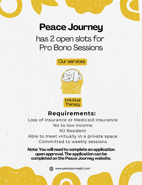 Pro bono therapy sessions are free counseling services offered to individuals who are experiencing financial hardship and may not otherwise have access to mental health care. These sessions are limited, based on availability, and designed to provide short-term support and connection to resources that will provide them longer term care.